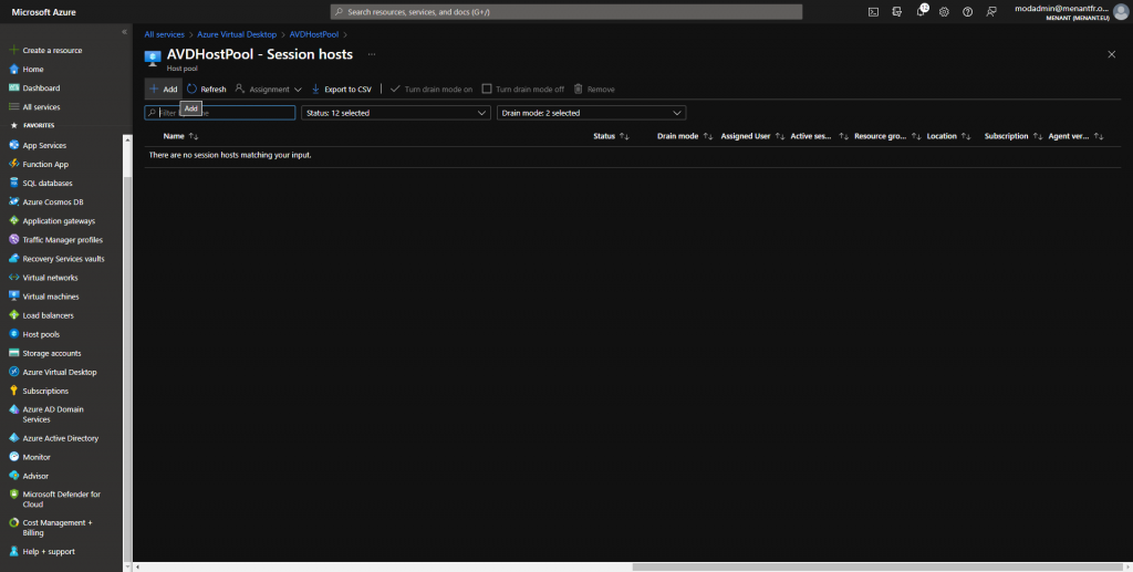 Pour créer un Pool d’Hôtes, recherchez « Azure Active Directory » dans les ressources Azure et cliquez sur Create a host pool » :